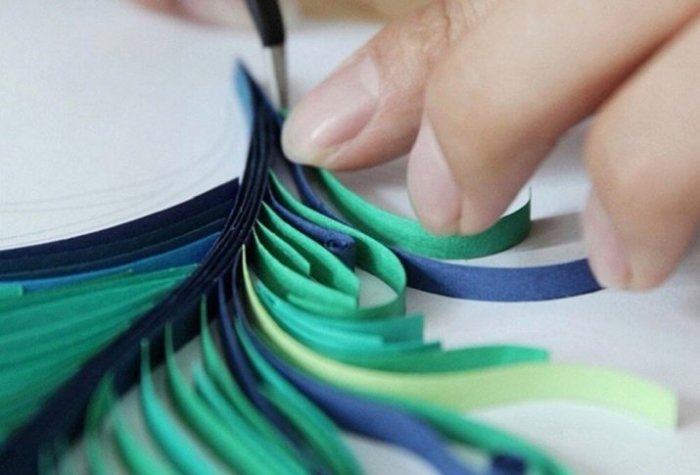 ​Сгибаем полоски по ​с радиусом 1,5 см, складываем пополам. Промазываем клеем и ​