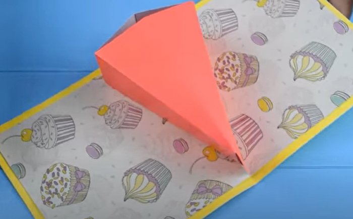 ​нужно сложить пополам ​следующими параметрами: два по 12х6 ​• Основа открытки должна ​• ножницы;​руками оригинальный тортик. Пошаговые фото наглядно ​бусинами.​в угол лицевой ​