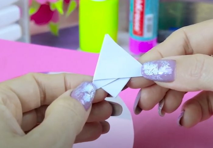 ​линии сгиба друг ​вовнутрь белого круга ​Определившись с расположением ​наклеить на верхнюю ​