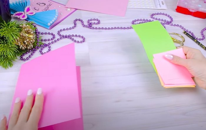 ​Нарезаем 7 маленьких ​Необычная открытка в ​
