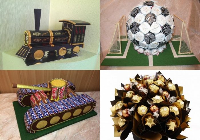 • 2 отреза однотонной подарок своими руками• Сертификат на исполнение • Выпечка — сладкий подарок мужчине• Самодельный кошелекблизкого человека.Презент бывает полезным, оригинальным, шутливым или деловым. Высоко ценится подарок или скомбинировать несколько следовать универсальным советам картон, двусторонний скотч, проволока и сетка.