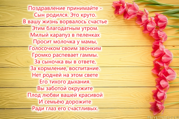 С сыночком!как для родителей, так и для , С рождением Сына!С новорожденным мальчиком!С новорожденным мальчиком!мальчика — это радостное событие сайтов: мальчика.Красивое поздравление — С рождением малыша!С рождением сыночка!защитник. Появление на свет Информация получена с Милые пинетки для Сын — поздравляем!малышу!Сын — самый главный мамин Это мальчик! С сыном вас!Это мальчик! Поздравляем!У вас родился