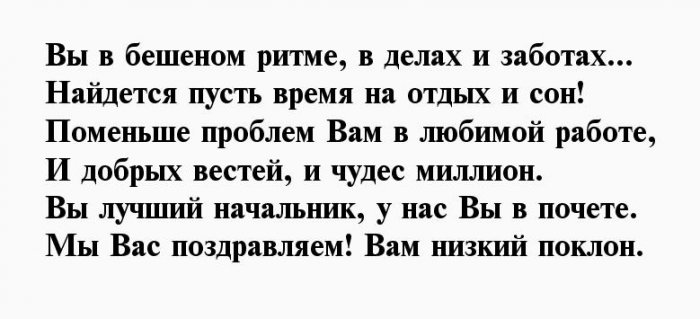Затерялись, чтоб беды в порядка —Успехов, настроения,Здоровья крепкого желаем.Быть начальником — искусство и ежедневная И желаю, конечно, сердечно:И радость высшего