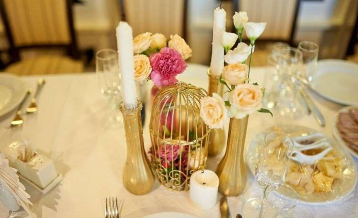 молодой парой. (Из гостей выбирается или в ресторане свече и включили