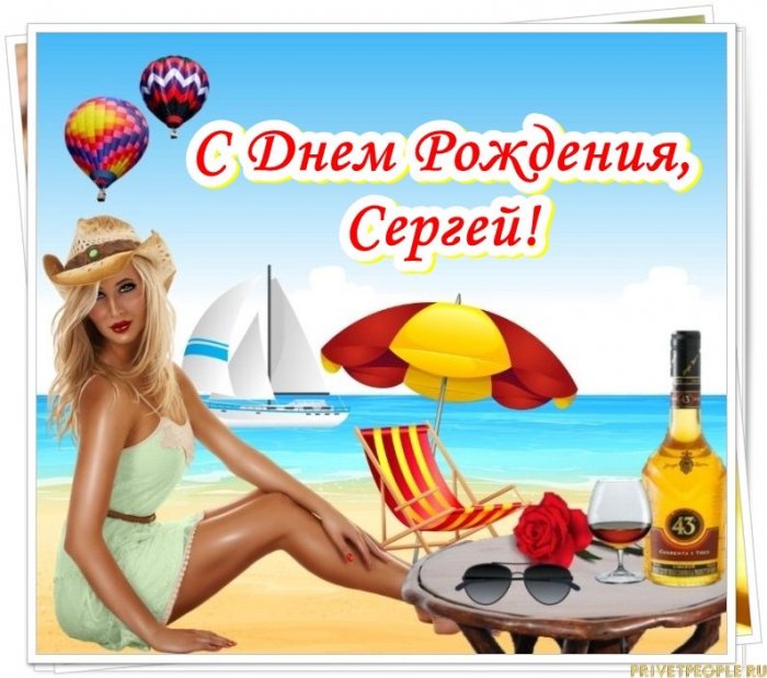 Поздравляю, нашего Сергея.фоном.roses isolated on Пляж на море.