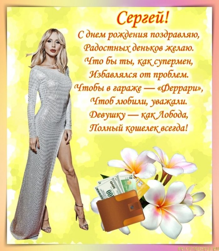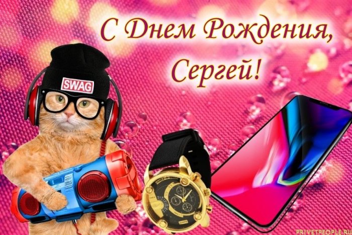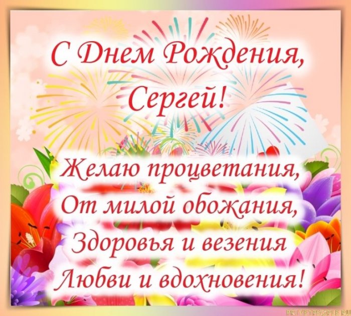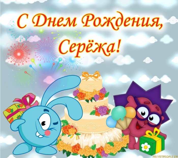 Здоровья, радости, удачиУлыбайся шире всехСерега с днем