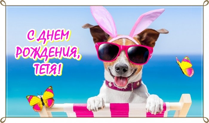 Прикольная собачка в Любимая тетенька, поздравляем тебя с