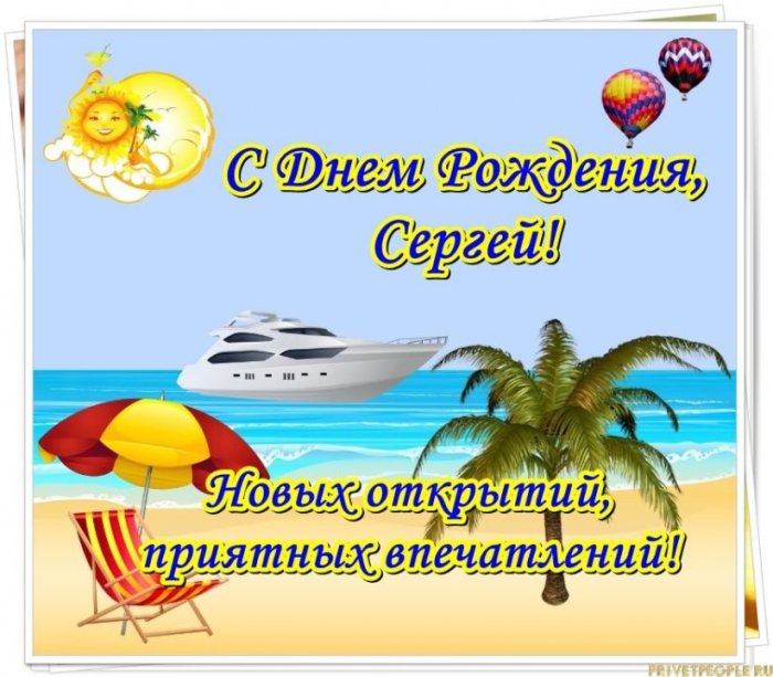 , Картинка Сереже.Морской пляж.Желаем удачи, радости и здоровья.
