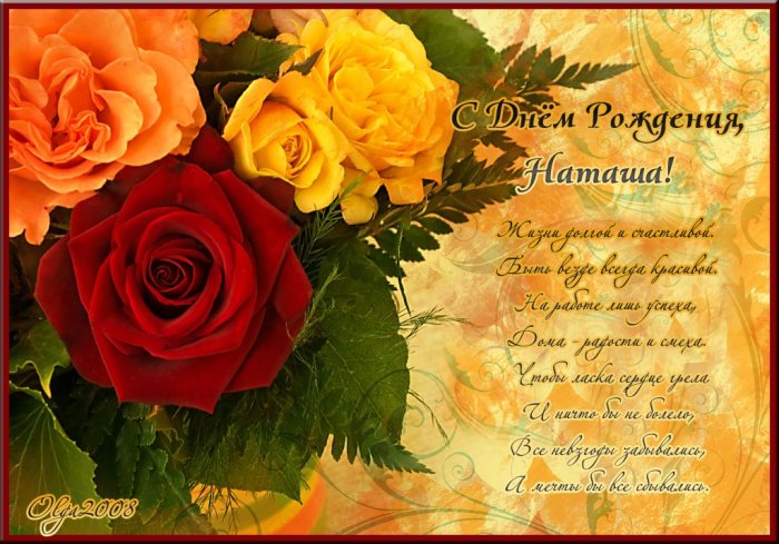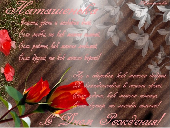 Поздравление милой Наташи Пусть, Наташа, в день рождения,