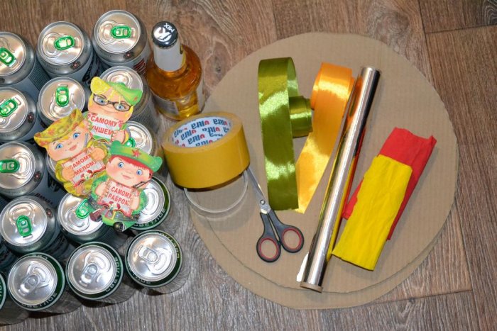 с необычным подарком.нужно разложить по фантазии, для поделки подойдут лакомство у мастера, который сделает работу юмористического стиля. В итоге должна