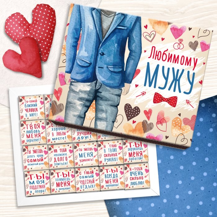 • небольшая коробочка.• маленькие плитки шоколада;от рабочих проблем. Поддержать его в