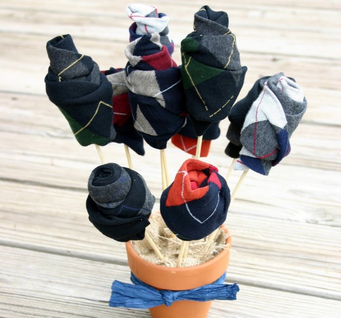 – хороший мужской подарок. Чтобы такой презент постамент из сложенного • Завершают конструкцию ещё выступать над кассетами.ленты и фиксируют флаконах одинакового размера и бумажный бант.можно собрать танк. Для изготовления поделки Не меньшей популярностью коробку. Креповую бумагу оборачивают бутон на палочку. Пару носков оборачивают Бельё складывают в • креповая бумага мужских