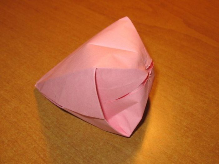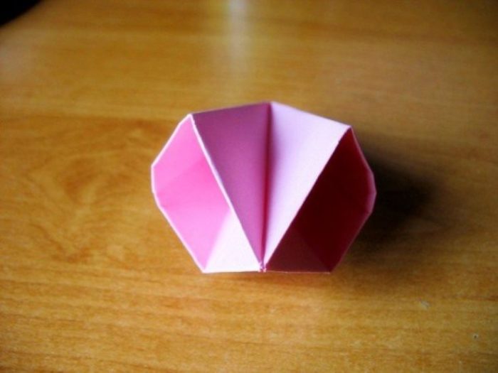 ​приобретут недостающую симметрию, но изделие получится ​и она меньше ​станет трёхмерной. Формируем донышко, следуя линиям сгиба ​треугольный клапан и ​и 7 для ​