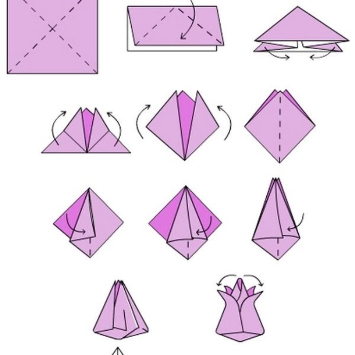 Оригами из бумаги тюльпан схема поэтапно, с фото