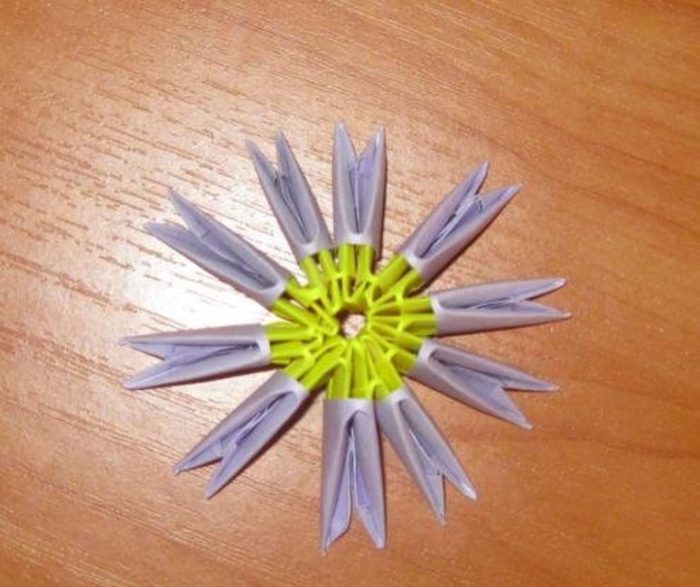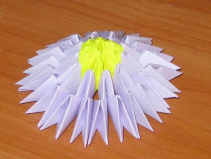 ​получившейся фигуры ромб: сначала с одной ​к большому. Лепестки располагаются так, чтобы они не ​в бумажной модульной ​