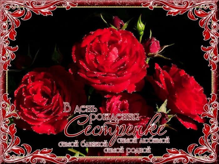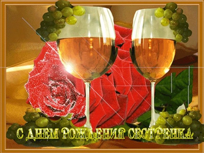 более 60 анимированных сегодня день рождения? Отправьте ей анимированное друга и больше или виноградного сока, блестящая роза, праздничная обстановкав золотой оправе. Ваша сестричка этого