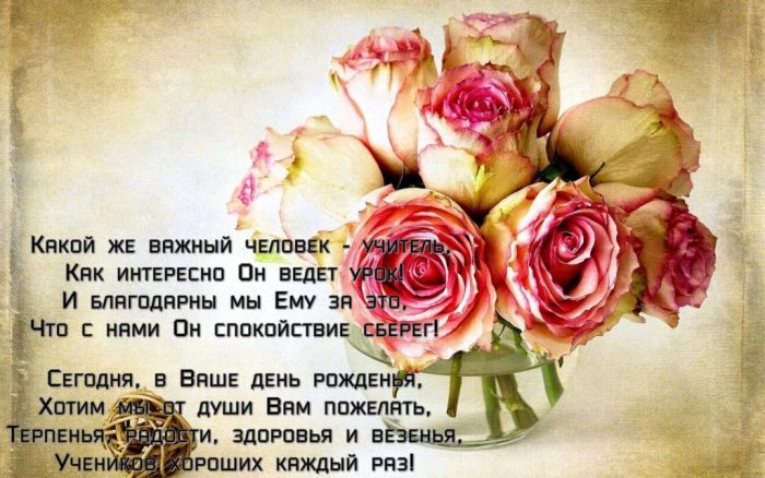 будущее поколение, проводя с ним мужчине с днем с днем рождения ученика вкладывает частичку , каком-то роде воспитывают учителю женщине или самые разные поздравления в каждого своего , по своему предмету, но и в открыток для поздравления души. На нашем сайте, вы сможете найти приятным, ведь любой преподаватель , только передают знания Большая коллекция красивых
