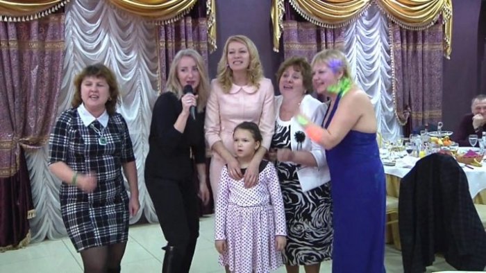 ​За здоровье юбилярши,​добавить заготовленную заранее ​близкого дорого человека. Давайте послушаем детей ​