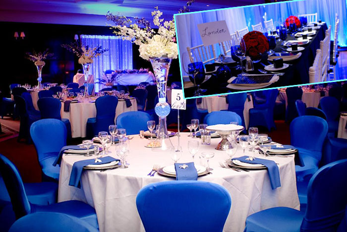 цветами, бокалы для шампанского сочетают с золотым, серебристым и белым