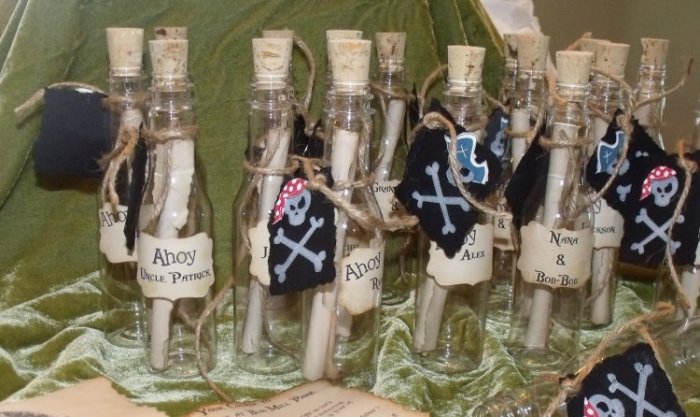 состаренной бумаге, бутылочки с надписями "Сокровища Джона Сильвера" для детей 7-10 лет, до 10 человек. Ведут праздник ведущий