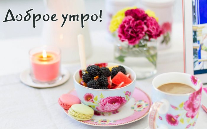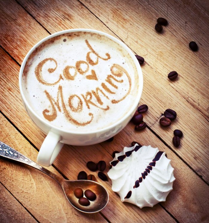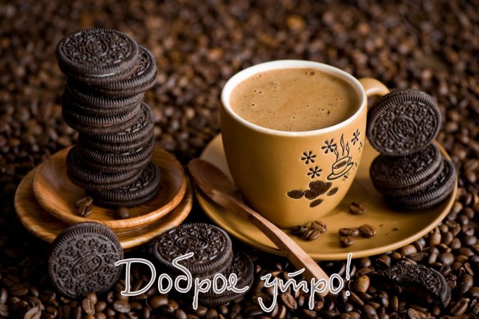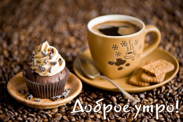 скорее начать своё фоне надпись «Доброго утра! Пусть будет добрым утреннего приветствия кофемана-сладкоежки? Вы её нашли
