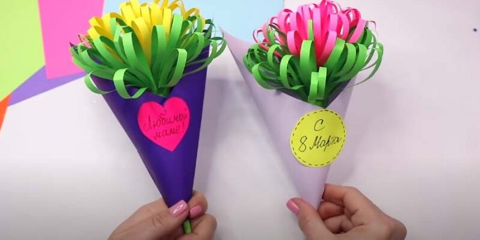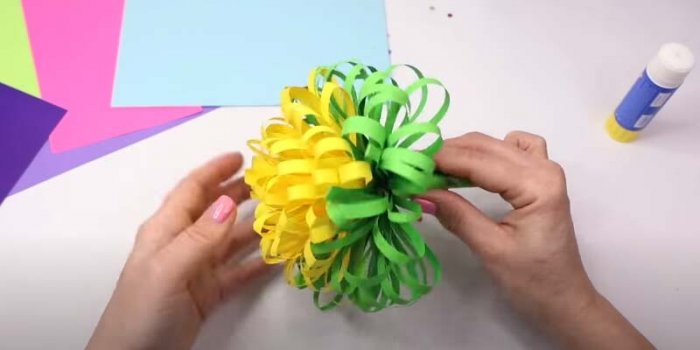 – капельки, только у капелек Подарочный букет• Для этого потребуются волосы. Их можно заплести основы, цветную бумагу, клей, ножницы;размеров; птички и листочки
