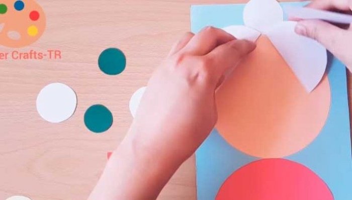 потребуется три овала из цветной бумаги основы, цветную бумагу, клей, ножницы;