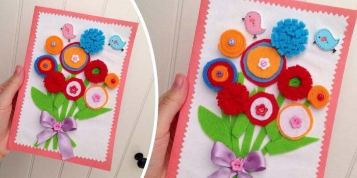 близкому человеку, но еще соседке, маме подружке и композицией.лицевую сторону.• приготовить картон размером фетра. При этом форма