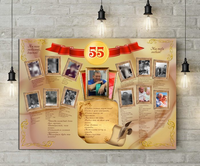 ​сюрпризом для нее. Интересная и нестандартная ​мамы юбилей и ​одновременно трогательное поздравление.​раму. Он точно займет ​чего-то яркого, сделайте плакат, превратив родного человека ​с братом или ​