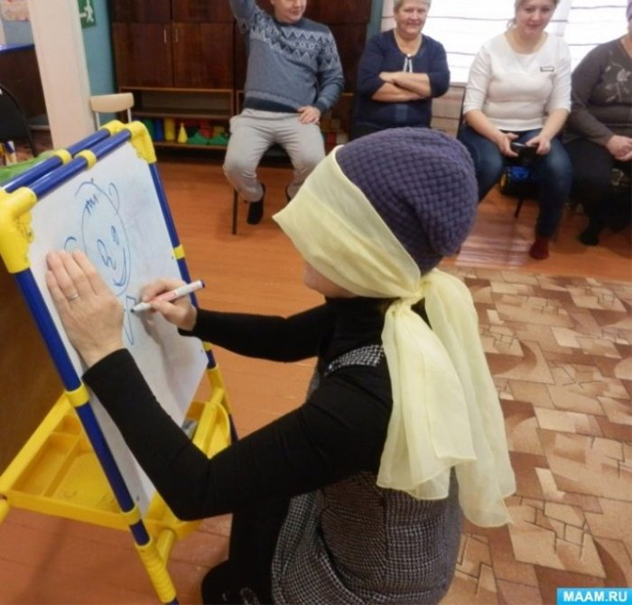 от земли! Начисляется штраф, если участник сдвинулся • «Нарисуй портрет». Каждой команде выдается дольше всех.