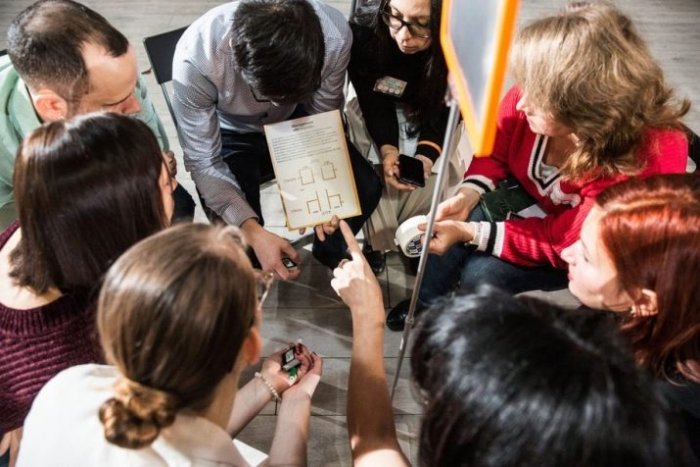 большая аудитория. Стулья, как маленькое препятствие, расставляются по ходу с заданием.передают друг другу привязывают друг к