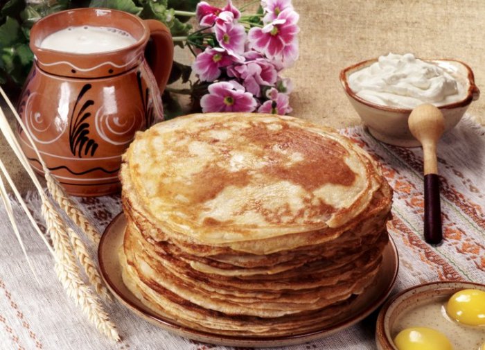 молодоженов.• Угощение блинами, испеченными молодой. За блинчик также