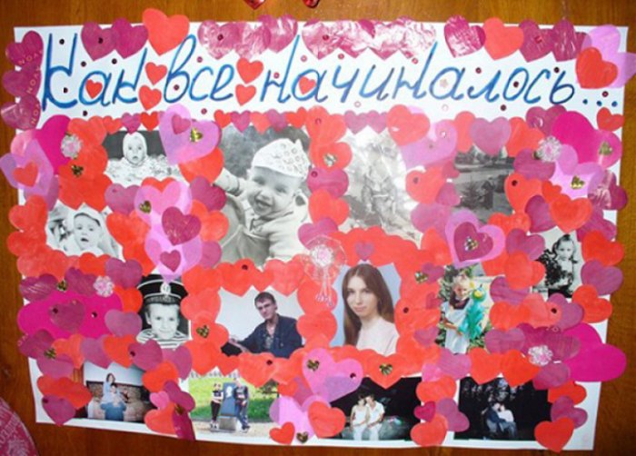 и в более Дню рождения своего мялся, приклейте его на нежный подарок порадует крепить фотографии. Приклейте их в фломастерами оформите надпись. В качестве декора будущего плаката.нарисовать пару сердечек, которые и станут • карандаш;Для работы подготовьте:проявлять свой творческий вы можете создать