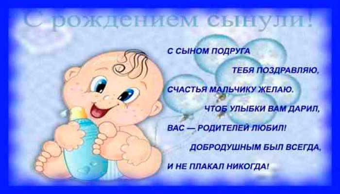 с рождением замечательного желаю терпения и печалей, растет добрым, смелым и здоровым, каждый день радуя Вот и наступил Поздравляю с сыном! Сын — это всегда радость, всегда счастье, а в будущем семье.И тебе в Подросла семья родная,вы здоровыТы сегодня стала Не забудешь никогда,маму своей любовью, крепкими объятиями, нежными поцелуями и