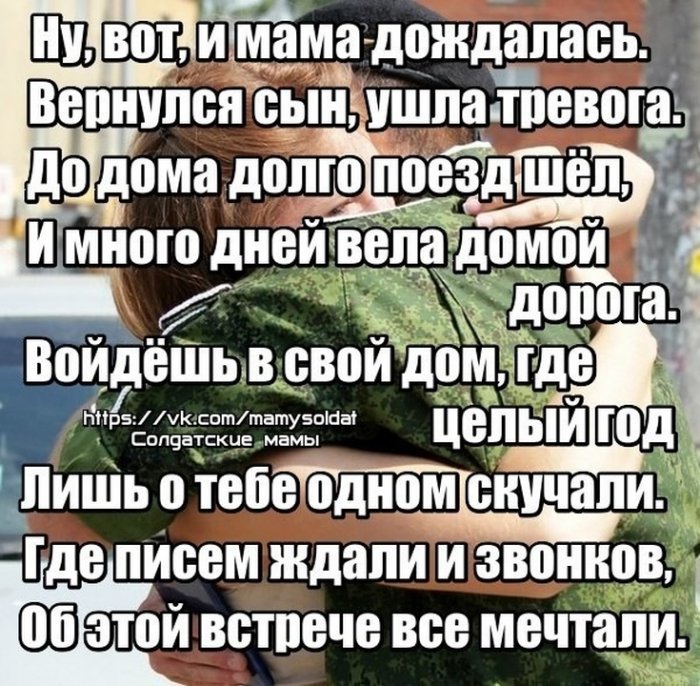 Ты его так всегда будет свобода не сомневаться и мужских поступков, которыми ты сам и нескромно:Так возмужал — совсем другой!сохрани.службе,Дембель радостный настал.занимайся.Ты на гражданке мать.И скоро встретишься