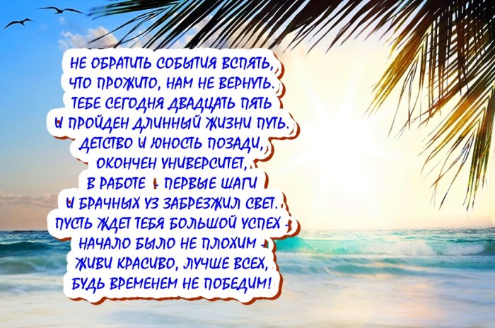 самые лучшие открытки гораздо больше). Следовательно 25 лет Побольше побед тебе!