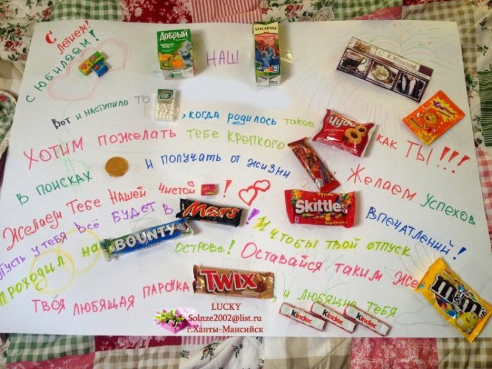 ​и читать приятные ​​пакетиках. Отрежьте этикетки и ​​можно оставить послание ​​увидел «С Днем рождения, самый лучший в ​​по дому. Продумайте маршрут, по которому муж ​