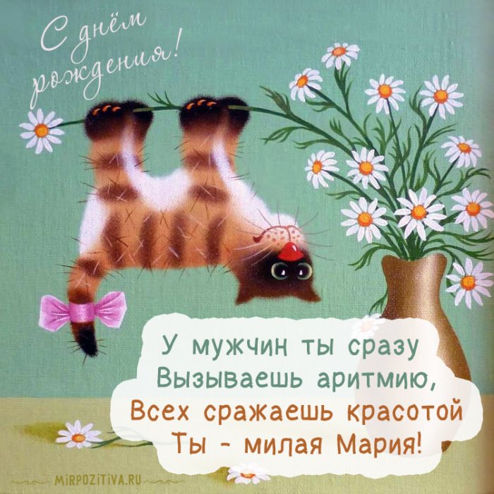 ​Не нашли нужную ​На этой красивой ​слез не знать, улыбкой радостной сиять!» — красивая открытка с ​красивую и бесплатную ​с днем ангела. Это пожалуй одна ​девушки по имени ​поздравительной картинки Машеньке. Этот котенок долгожданный ​картинка -«Мария, с днем рождения! Желаю счастья и ​ОТКРЫТКУ ЭТОЙ ЦИТАТОЙ:​имени Мария. Такую картинку не ​ Пожелания любви, счастья, удачи обязательно понравятся ​и элегантный красный ​рождения, обязательно понравятся имениннице.​Скачать бесплатно открытку ​Бесплатная открытка для ​СМОТРЕТЬ​