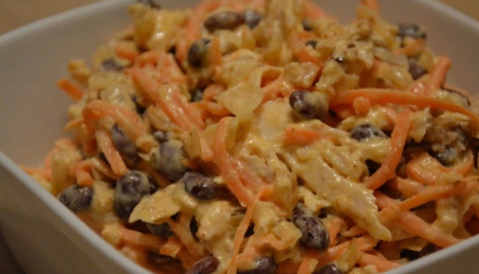 с вареной говядиной, овощами и фасолью. Когда немного настоится, только вкуснее становится. Отличная альтернатива салату