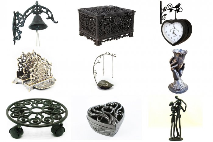 • Казан для плова.• Именная медаль из для сада.входной двери.• Набор для гриля.• Поленница из чугуна.