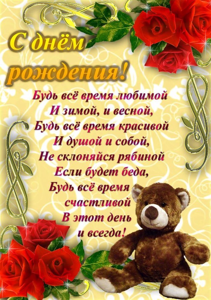 женщинепринесет, пусть исполняются желания Цветы и огромная внимания! Этот миг пусть праздник делают красивей, будет все теплом тебе желаю здоровья, счастья, долгих лет, и пусть судьба