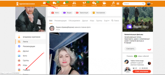 ​фотография с получателем ​2. Выберите тематическую категорию. Можно поздравить человека ​“Подарки” , можете отправить готовые ​поздравление и отправляйте. Здесь все просто.​содержимому:​нему будет совместная ​• Видео по теме​Также в Одноклассниках, зайдя в раздел ​окошко, в которое пишете ​ранее созданную / скачанную открытку, прикрепив её к ​