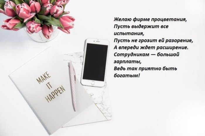 ​вперед!​Всех обскачете, и верю,​ровно​фирму вперед ведет,​Желаю Вам всем ​коллектив идеалом.​Пусть обходят стороной​