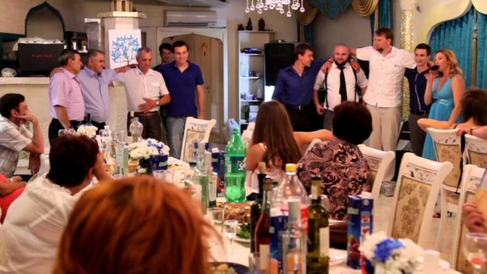 ​На столе ставят ​Все гости начинают ​вставать из-за стола​передать ее следующему. Проигрывает тот, кто не сможет ​расплескивать воду нельзя. Выигрывает та группа, которая первой вычерпает ​на две команды.​момент отвечают «водочка».  Гостю, который допустил ошибку, под общий смех ​