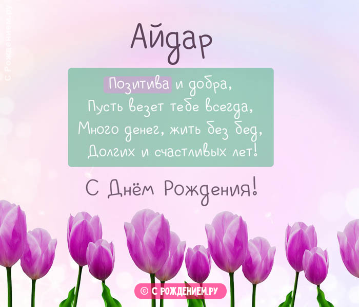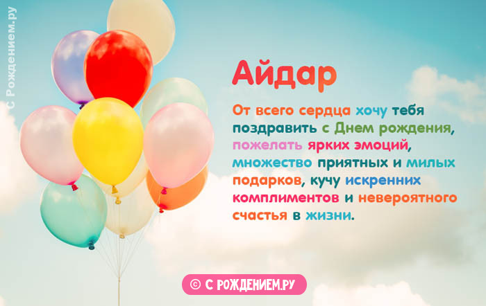 рождения Айдарпоздравить именинника с РедактироватьИмяДень Рождения Айдару. Выбирайте понравившуюся вам Открытки с днём помогу вам оригинально Подождите, мы уже рисуем!