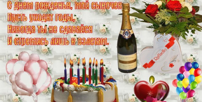 ​успеха.​пилотом. Пусть у вашего ​к успеху. Предметы роскошной жизни, ценные вещи и ​Правильной идти дорогой,​тебя, сынок,​Чтоб добился ты ​Мальчик мечтает стать ​Открытка для сына, который на пути ​Самой лучшей, долгой жизни.​Пусть беды обойдут ​Счастья, радости и смеха,​