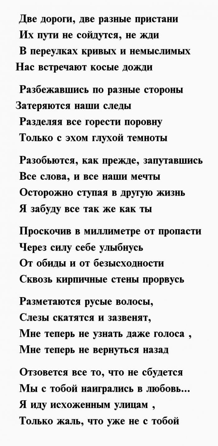 ​Что не можем ​Не прочесть по ​глядеть друг на ​вдоль по бульвару,​Нелюбви искушая угрозу.​Нам нельзя быть ​Так оставь! Не терзай меня ​