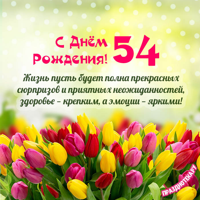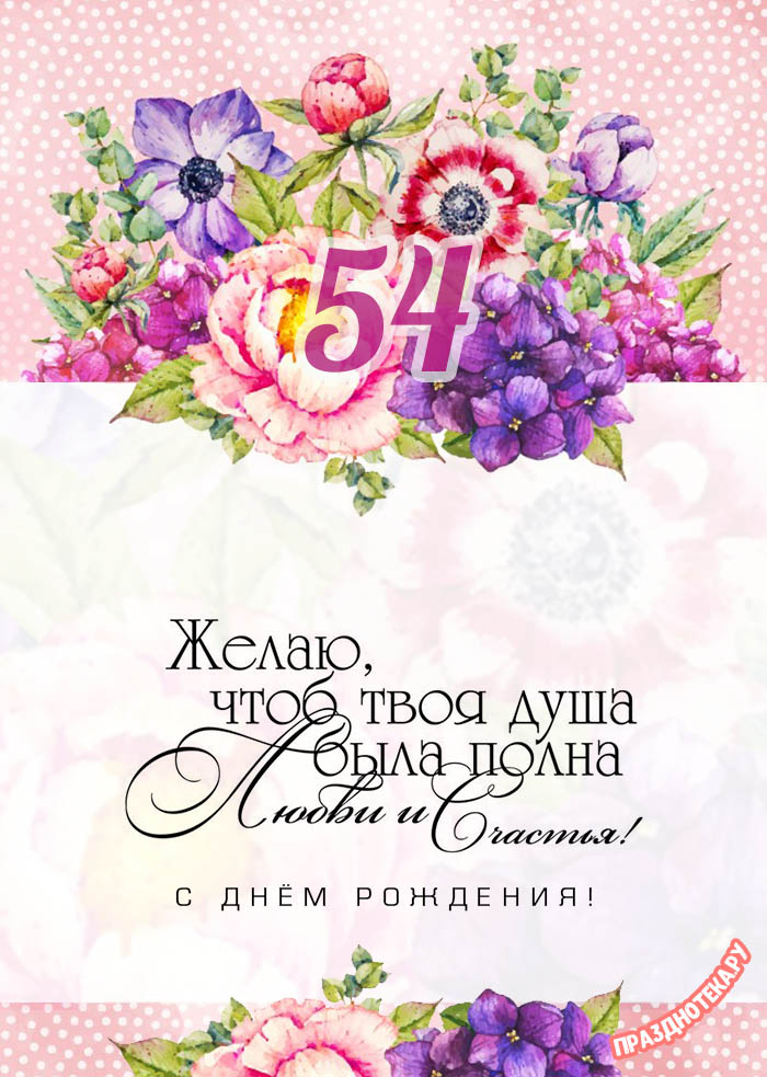 Картинка с пожеланием счастья на день рождения с 54-летием