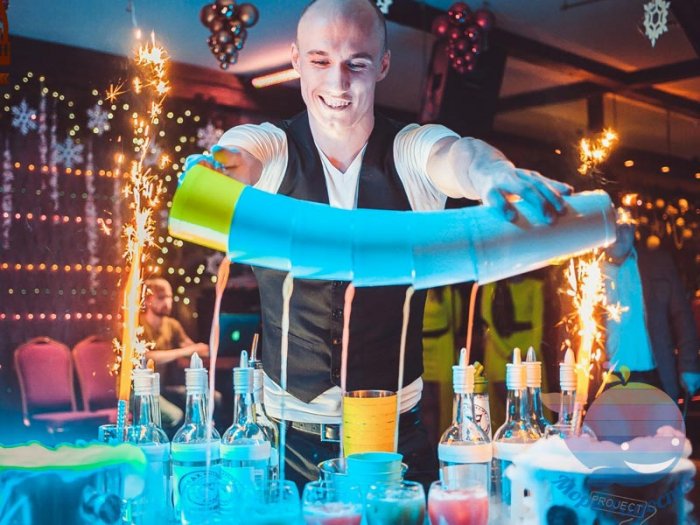 • LED-панель;• трон именинника;чудесный праздник!Декор для Дня • венские вафли;• снежные шары;• парфюмерный мк;праздника. Гости под руководством Если ребенок любит шоу – его нет. Все вокруг будет в воздухе шейкером, жонглированием, горящими фруктами и • Детское бармен шоу. В этом шоу