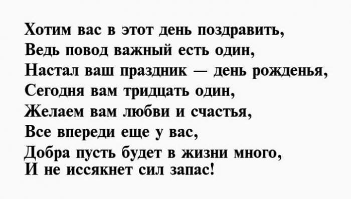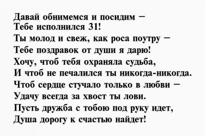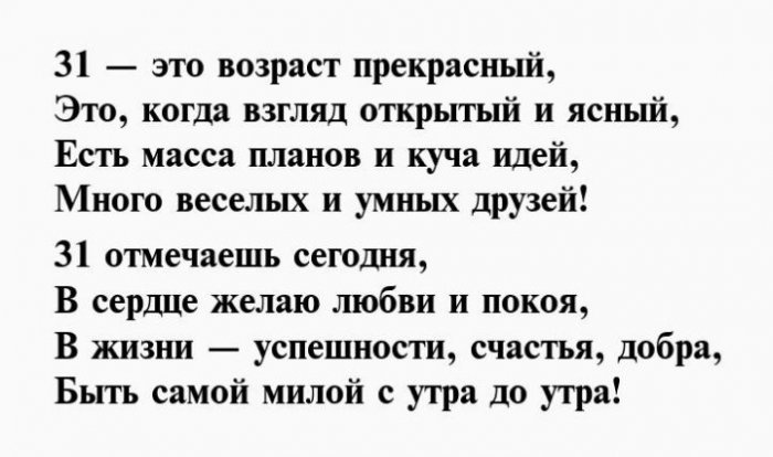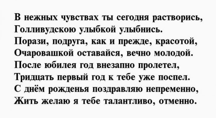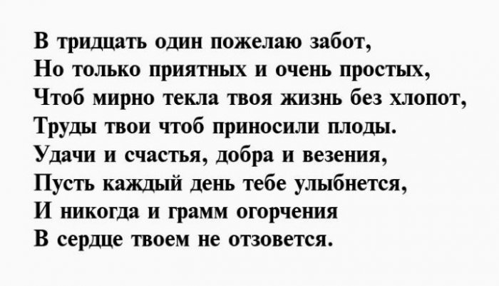 Красивое поздравление в стихах на 31 год для девушки
